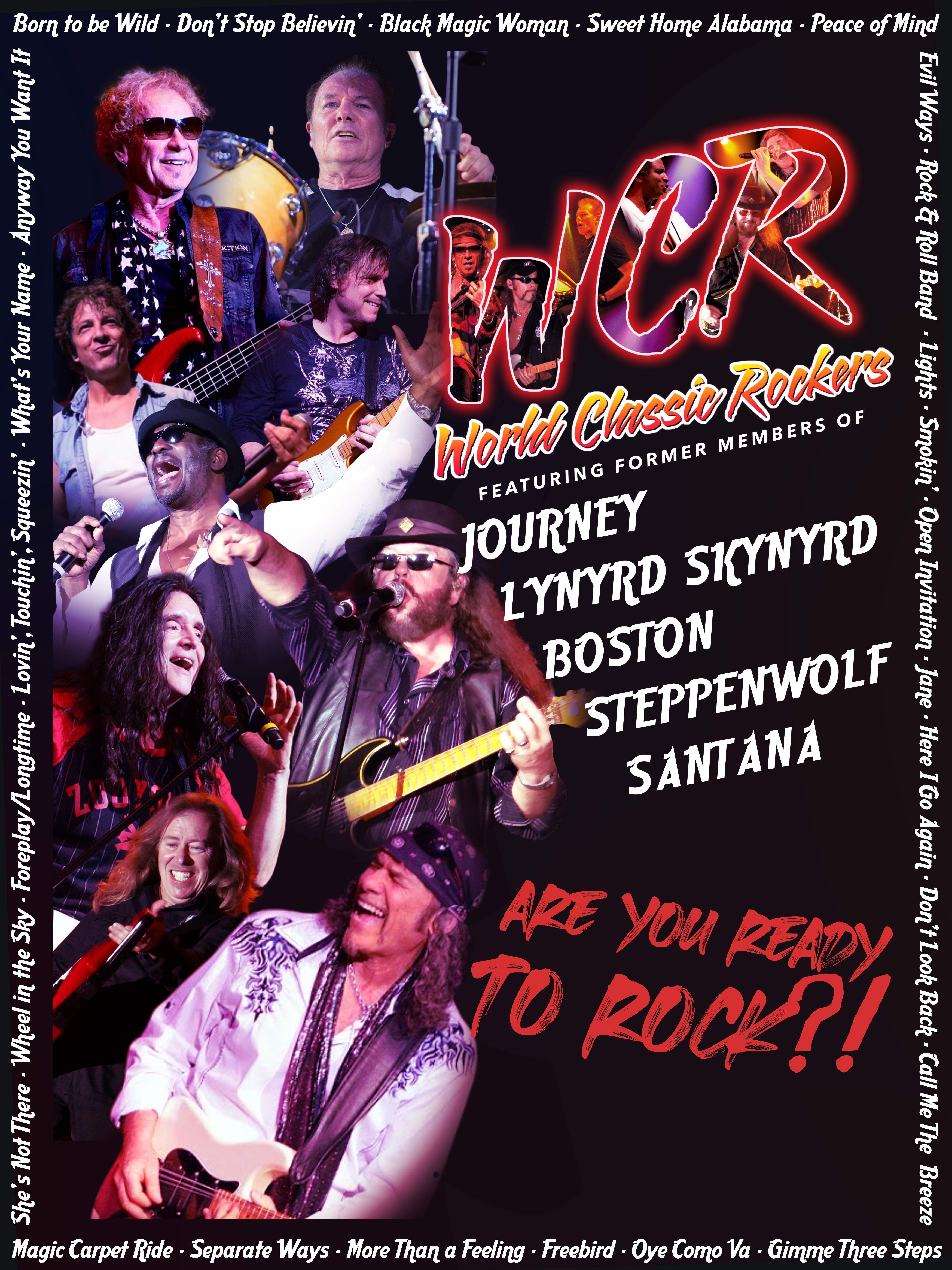 World Classic Rockers features former members of legendary bands including Journey, Steppenwolf, Boston, Lynyrd Skynyrd, and Santana — performing the mega-hits you know by heart.